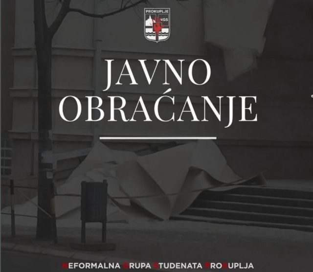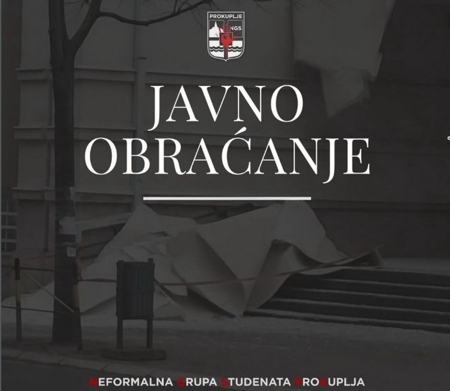 Povodom urušavanja dela fasade na zgradi Gimnazije u Prokuplju, javnosti su se obratili i studenti iz Neformalne grupe studenata Prokuplja.