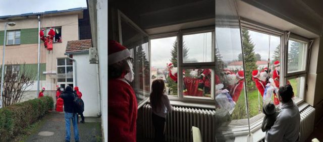 Pripadnici Gorske službe spasavanja, obučeni u kostime Deda Mraza, spustili su se sa krova zgrade Dečjeg odeljenja i kroz prozore uručivali novogodišnje paketiće, na oduševljenje dece i njihovih roditelja. Neobičan dolazak Deda Mrazeva pretvorio je bolničke hodnike u mesto radosti i prazničnog raspoloženja.