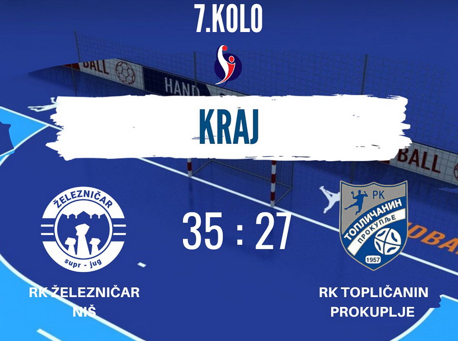 U okviru 7. kola Super B rukometne lige, rukometaši Topličanina poraženi su na gostovanju u Nišu od ekipe Železničara rezultatom 35:27 (17:14).