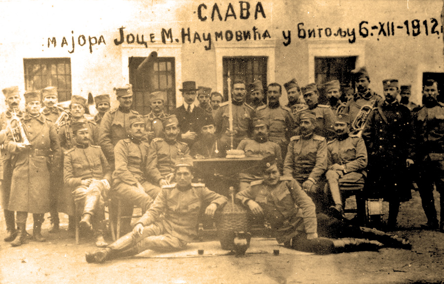 Sa cvetovima nevena, zadenutim u nakrivljene šajkače, vojnici razvrstani u čete i bataljone, polako napuštaju zborno mesto. U mnogim očima iskrile su suze, među onima koji su ispraćali svoje vojnike čuo se i prigušeni jecaj. Očevi i majke su ispraćali sinove, mlade snaše sa decom u naručju svoje stasite muževe, verenice su stidljivo obarale pogled – a svima je na umu bila samo jedna misao – da li će se njihov najdraži vratiti iz rata.