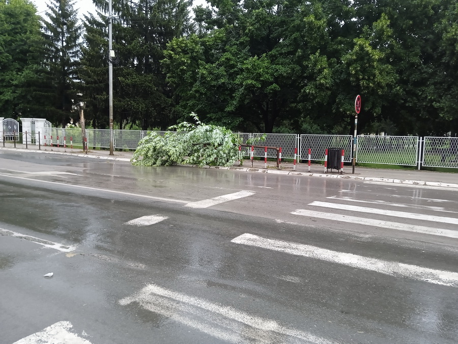 Tako je tokom nevremena polomljeno drvo koje se nalazi uz pešački prelaz na semaforu kod OŠ “9. oktobar”..