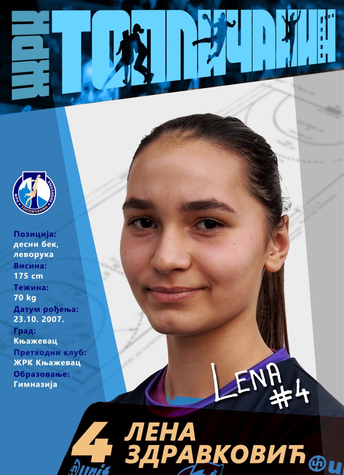 Lena Zdravković (2007) igra na poziciji desnog beka.