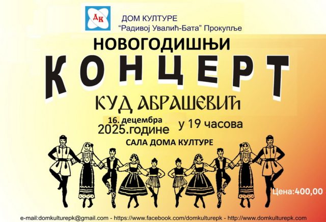 Novogodišnji koncert biće održan u sali Doma kulture, sa početkom u 19 časova. Ulaznice su u prodaji po ceni od 300 dinara, a zainteresovani mogu izvršiti rezervacije na broj telefona 027/321-002.