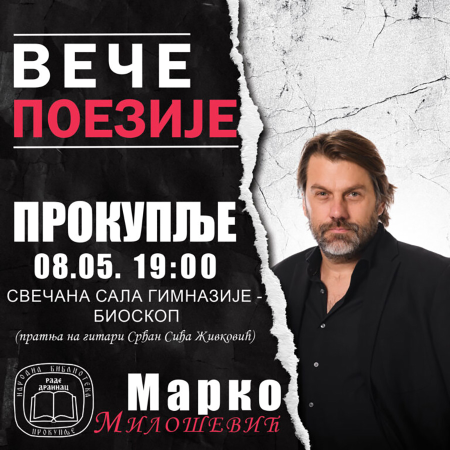 Narodna biblioteka “Rade Drainac”, u okviru Drainčevih književnih susreta, organizuje u sredu 8. maja Poetsko veče sa Markom Miloševićem.