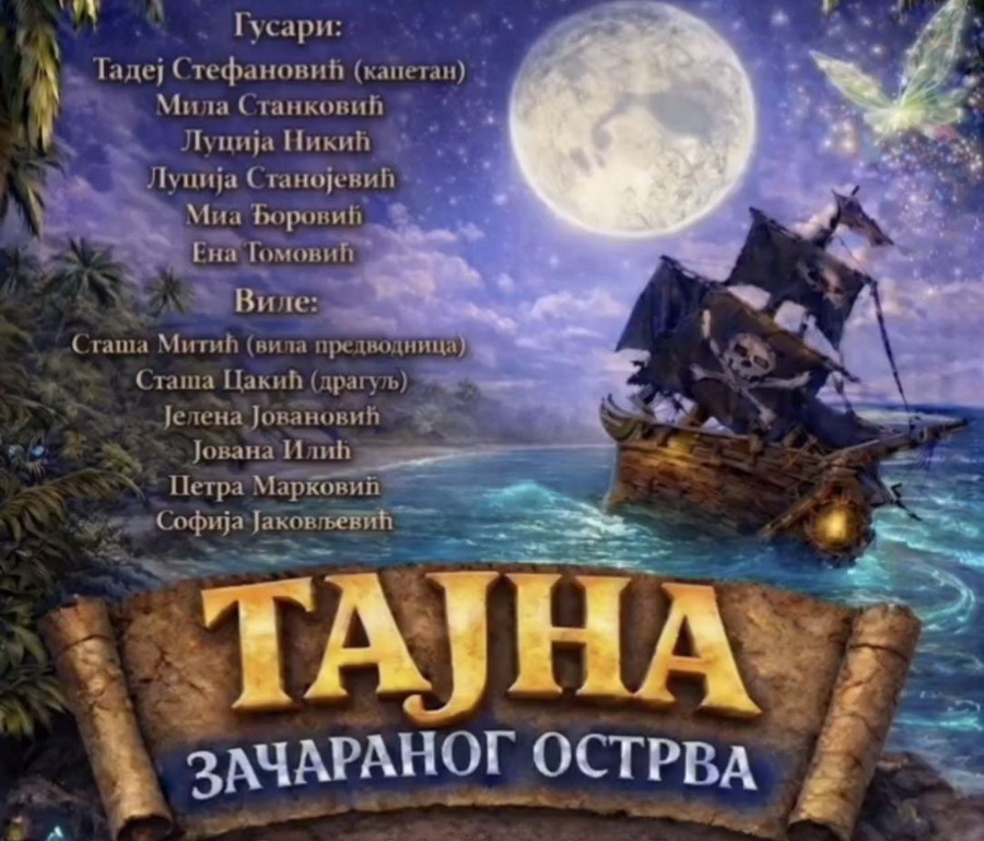 U ulozi pirata nastupaju Tadej Stefanović, Mila Stanković, Lucija Nikić, Lucija Stanojević, Mia Đorović i Ena Tomović, dok će se kao vile publici predstaviti Staša Mitić, Staša Cakić, Jelena Jovanović, Jovana Ilić, Petra Marković i Sofija Jakovljević.
