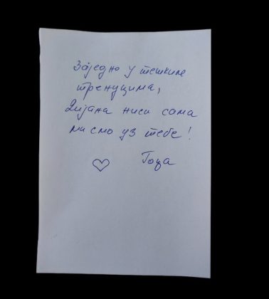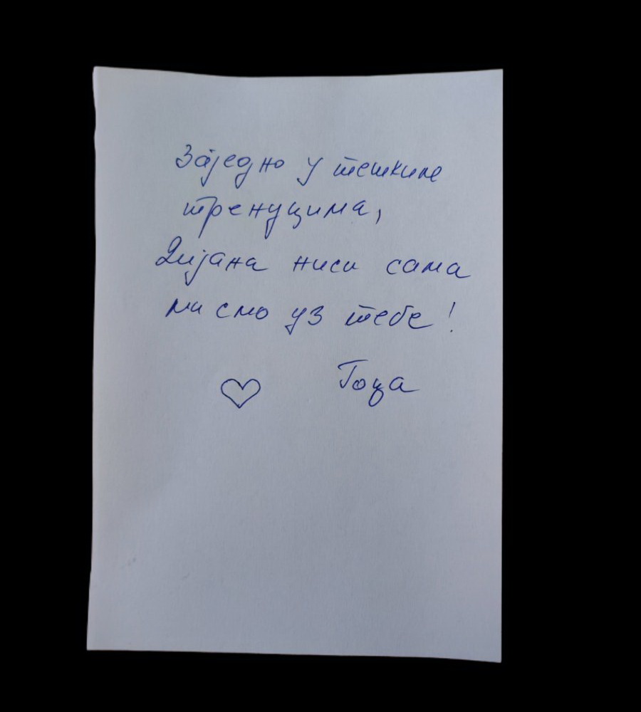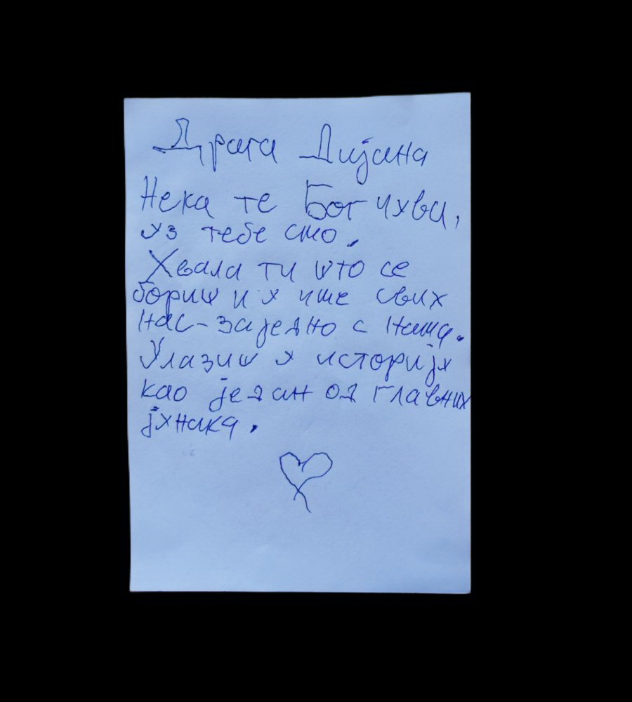 Kada ih je pročitala, Dijana Hrka se zahvalila građanima Prokuplja na rečima podrške i snage, koje su joj vratile veru da ljudi širom Srbije razumeju i osećaju njenu borbu.
