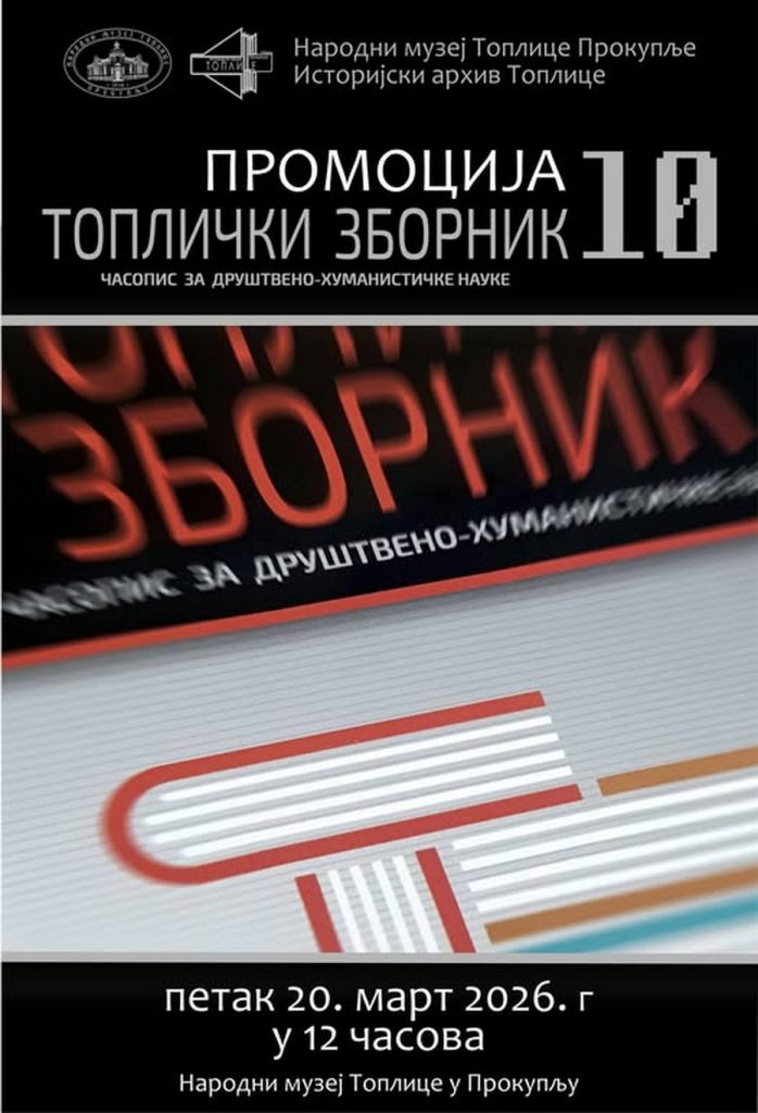 Promocija će biti održana u petak, 20. marta 2026. godine, sa početkom u 12 časova u muzeju, a na događaju će učestvovati autori radova koji će predstaviti svoja istraživanja i ponuditi nove uvide u kulturno-istorijsko nasleđe Toplice.