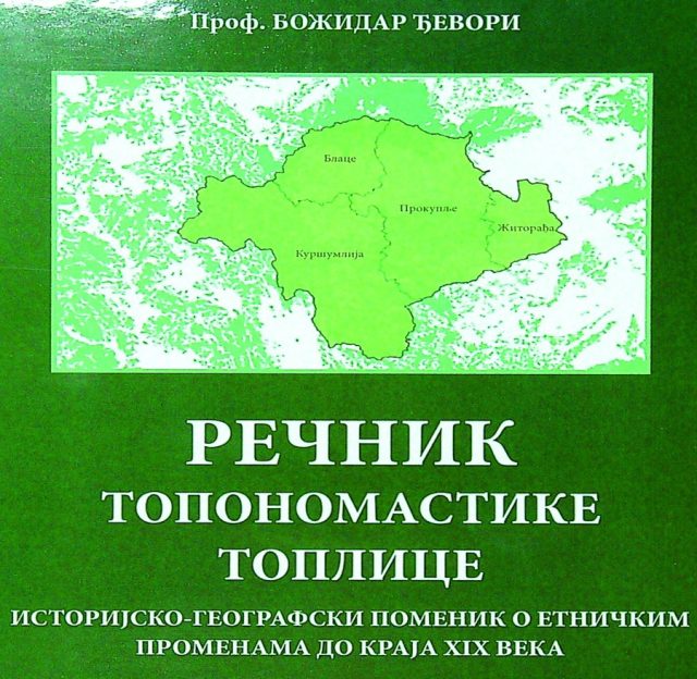 U sredu, 27. decembra, u 13 časova, u sali Narodne biblioteke “Rade Drainac” u Prokuplju, održaće se promocija knjige “Rečnik toponomastike Toplice” autora prof. Božidara Đevorija.