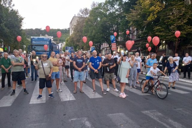 Građani su se okupili u 19 časova ispred zgrade Osnovnog suda, nakon čega su blokirali ulicu i održali 16 minuta tišine u znak sećanja na nastradale.