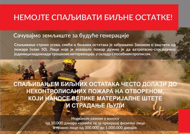 Podsećamo da je Zakonom o zaštiti od požara, kao i drugim propisima, strogo zabranjeno: