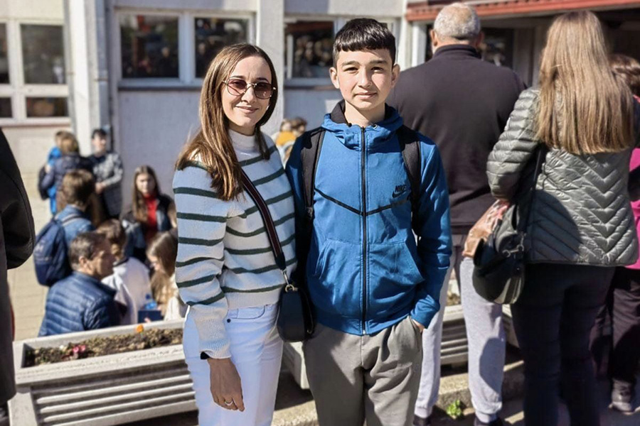 Strahinja Trajković sa nastavnicom Jovanom Jevtović, foto: fb