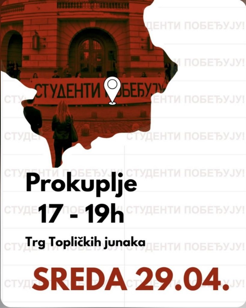U okviru ove inicijative, akcija će biti održana i u Prokuplju, na Trgu topličkih junaka, u periodu od 17 do 19 časova. Cilj je da se kroz simbolične poruke podstakne vidljivost studentskih aktivnosti i ojača komunikacija sa građanima.
