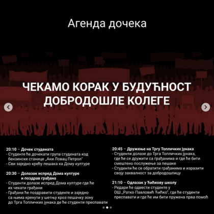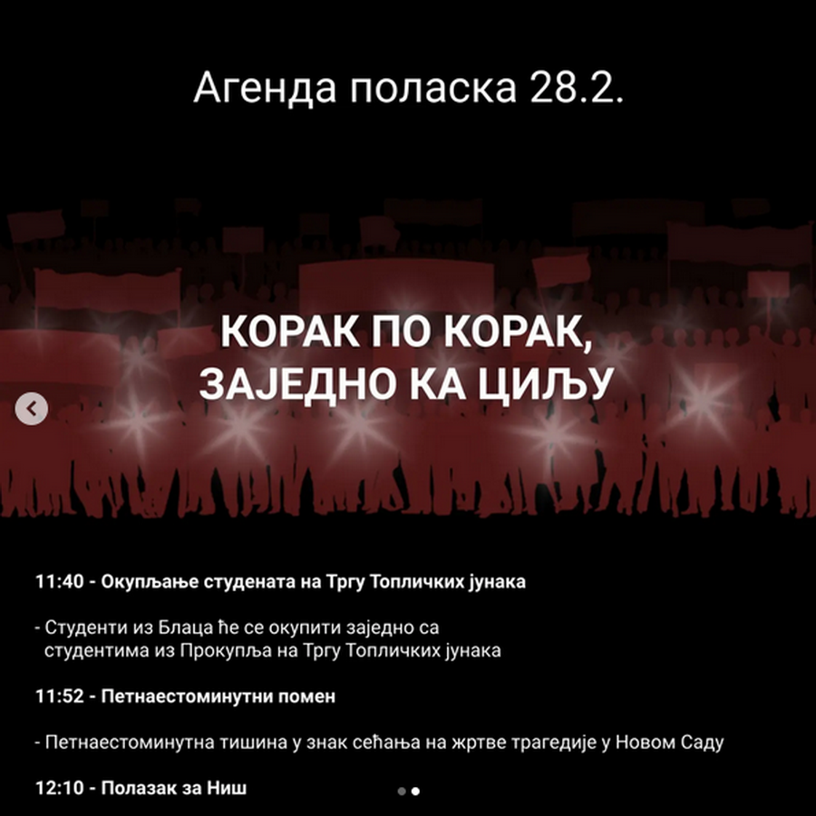 Za petak 28. februar, okupljanje je predviđeno u 11.40 časova na Trgu Topličkih junaka gde će se održati petnaestominutna tišina.
