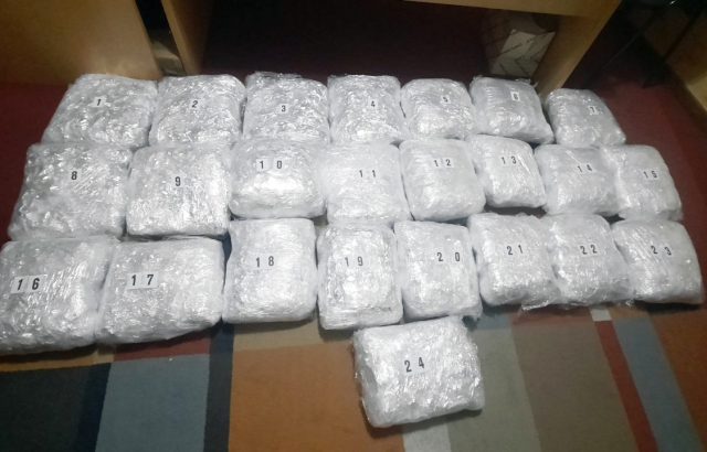 Policija je sinoć u Kuršumliji zaustavila automobil marke ,,pežo” kojim je upravljao osumnjičeni i u gepeku pronašla i zaplenila 24 paketa sa oko 27,3 kilograma biljne materije za koju se sumnja da je marihuana.